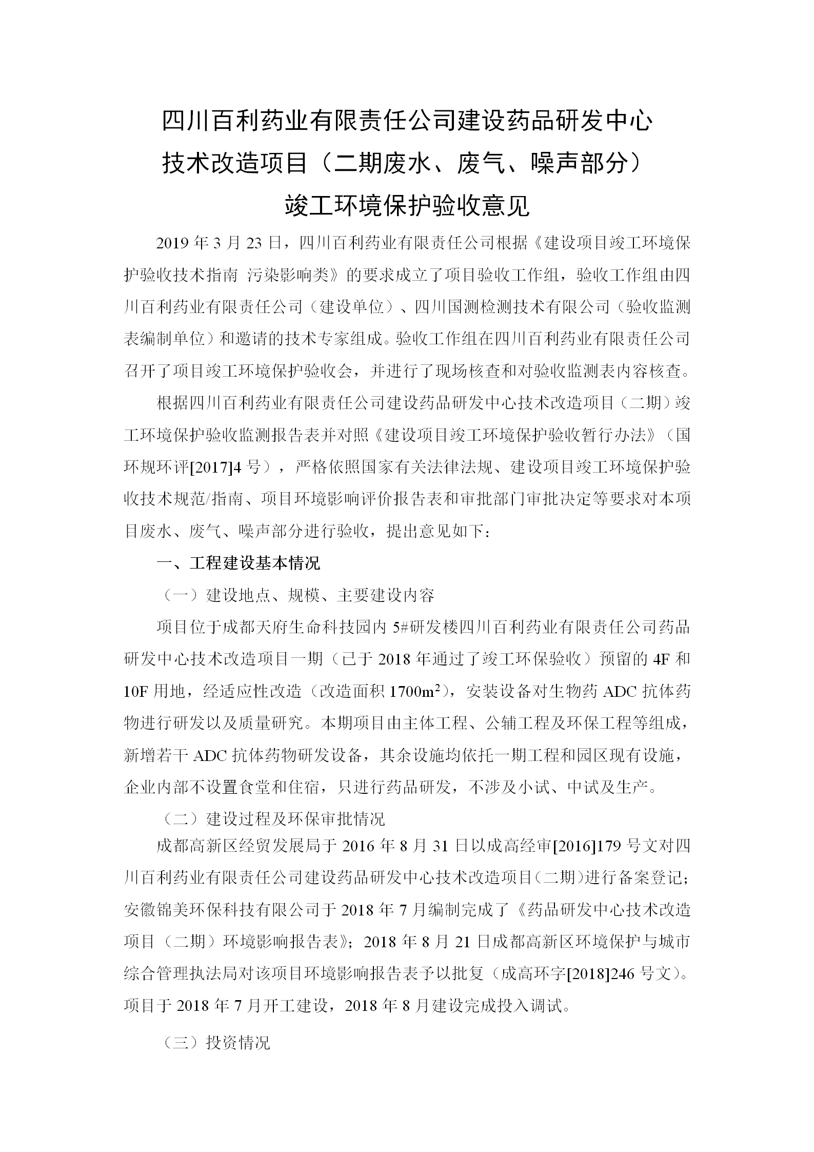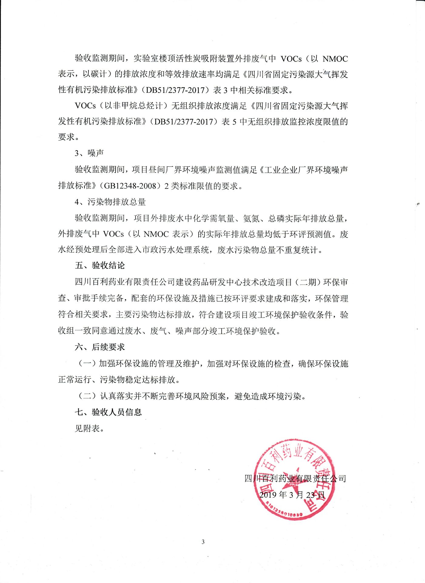 根据《国务院关于建设项目竣工环境保护管理条例的决定》以及环保部《建设项目竣工环境保护验收暂行办法》的公告(国环规环评[2017]4号)现将《四川金年会-金年会(中国)一站式体育服务平台有限责任公司药品研发中心技术改造项目(二期)竣工环保验收监测报告》及验收意见公示如下: